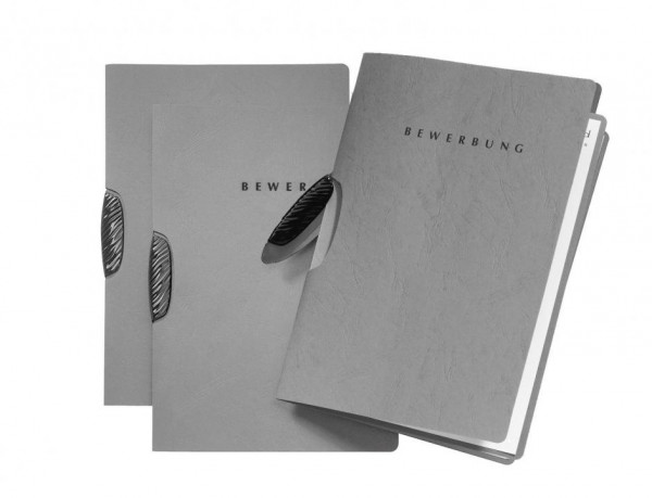 Die Bewerbungsmappe der Serie Swing von PAGNA ist besonders hochwertig. Es ist eine 2-teilige Mappe mit einer Kunststoffklemme, welche Ihre Bewerbungsunterlagen sicher festhält. Der hochwertige Karton ist mit Lederstruktur verziert. Der silberne Schriftzug "Bewerbung" auf dem Vorderdeckel lässt die Bewerbungsmappe zusätzlich besonders edel aussehen.