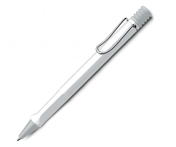 LAMY safari Kugelschreiber in hochglänzendem weiß. Perfekte Ergonomie, zeitloses Design sind die Gründe, die den LAMY safari Kugelschreiber zu einem der beliebtesten Schreibgeräte für junge Menschen machen. Griffsympathisch durch markante Griffmulden.